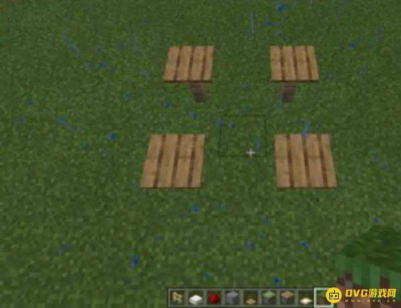 4、在四个栏杆上各放一块压力板当桌面,如下图;