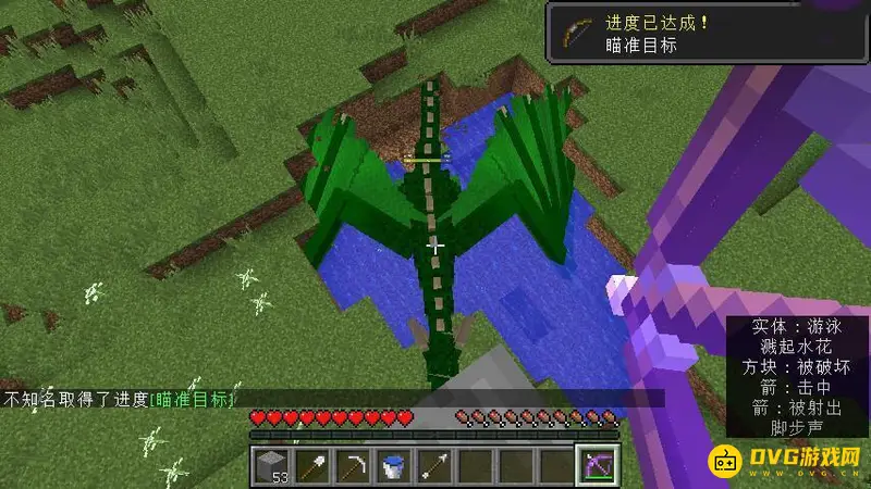 2、火龙打法和冰龙方法差不多,但是不能用岩浆了,至少准备2组箭,水桶还是要的(方便快速下柱子,当然你要回收石块也可以,但是如果你本来就是石块太多的话就留在原地也没有任何问题),或者像下图一样,想办法把火龙吸引到水塘里面,然后弓箭伺候(火龙在水里如入泥潭)。然后输出即可。