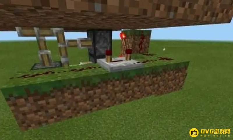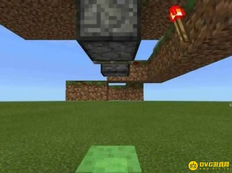 6.往向粘液块的红石上放置两个4档活塞,盖上黑曜石,制作完成!