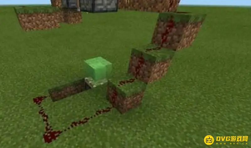 5.在粘液块下方放置一个朝上的活塞,连上做好的那个红石线。