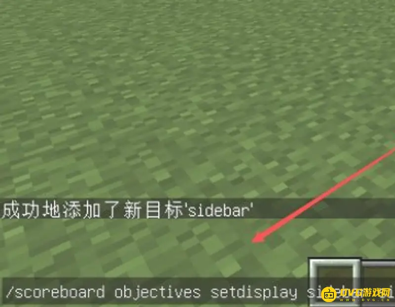 4、这时在游戏的内部内置了一个名为“积分榜”的积分榜,但是这时积分榜还没有显示出来,需要再召唤出输入框输入“/scoreboard objectives setdisplay sidebar sidebar”来召唤出积分榜。