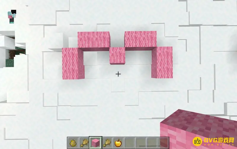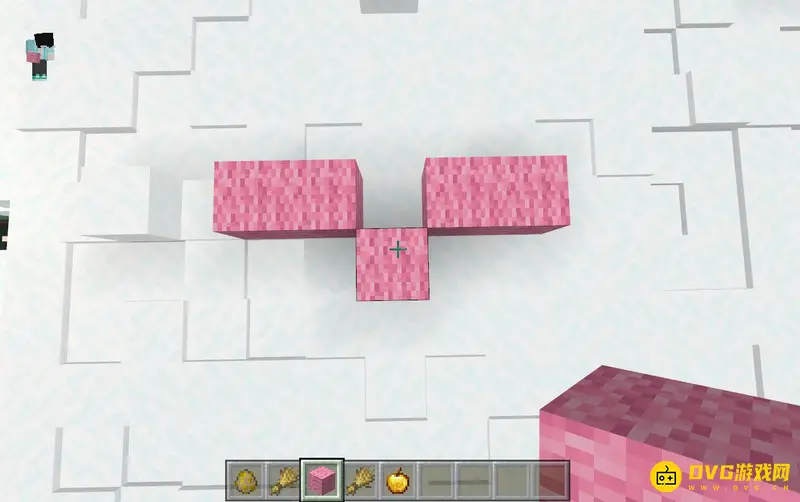 1,首先我们需要准备粉色羊毛,然后如图摆放,为2X1X2的波浪状。