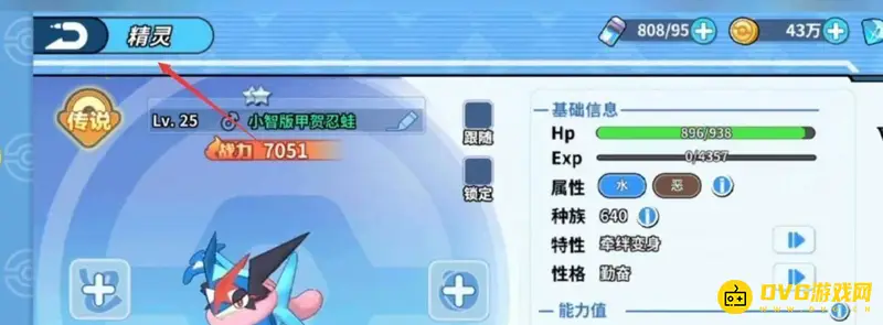 3、选择甲贺忍蛙:选择点击界面中的甲贺忍蛙精灵。