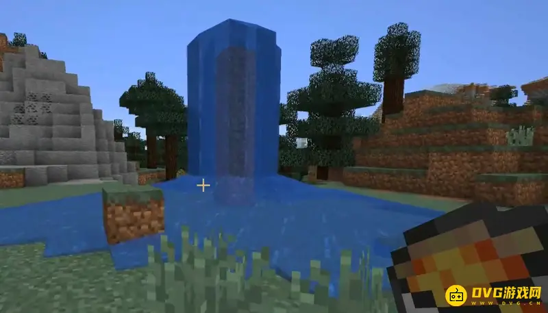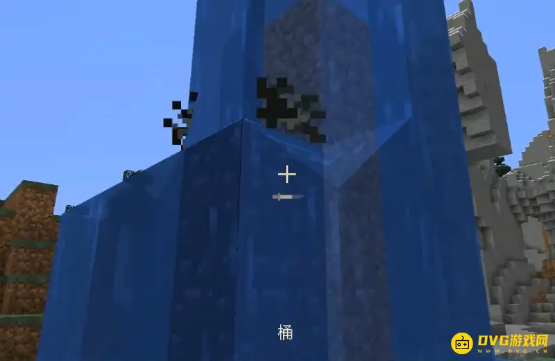 ②在用桶装上岩浆,紧贴着立起泥土块将岩浆放置在流下的水中,产生黑曜石;