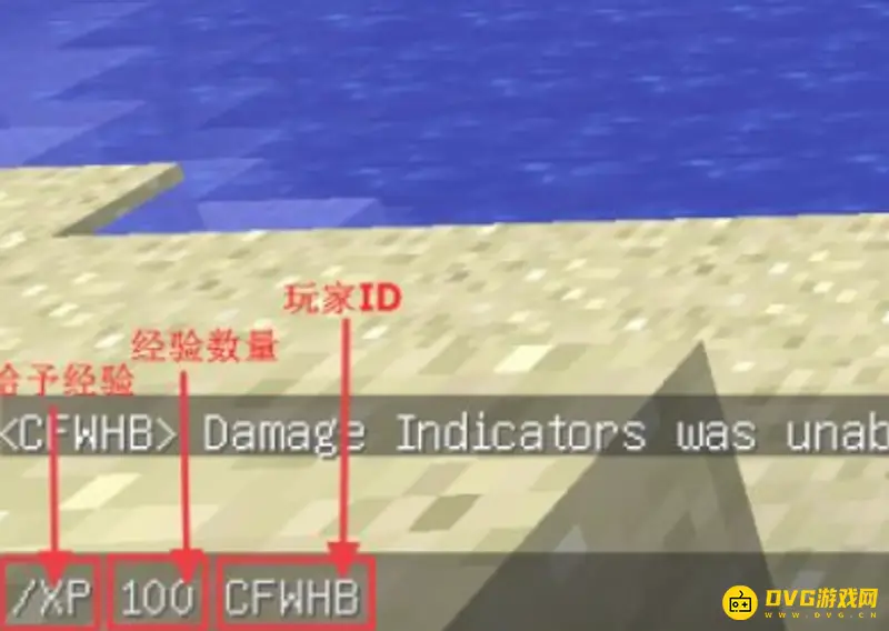 2.在对话框中输入指令【/xp 100 玩家ID】,其中【/xp】是给予经验的指令,【100】是经验的数量,我们可以更改这个数字来增加经验数量,【玩家ID】就是我们的游戏名字