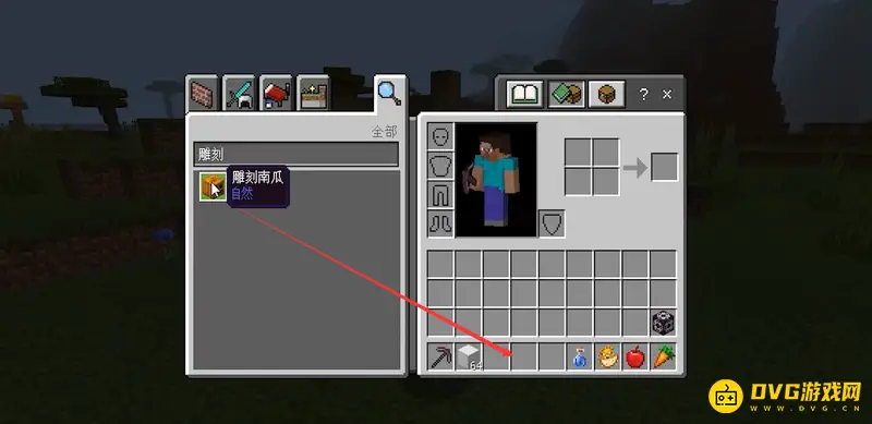 2、将雕刻南瓜拖入物品栏,如下图所示。