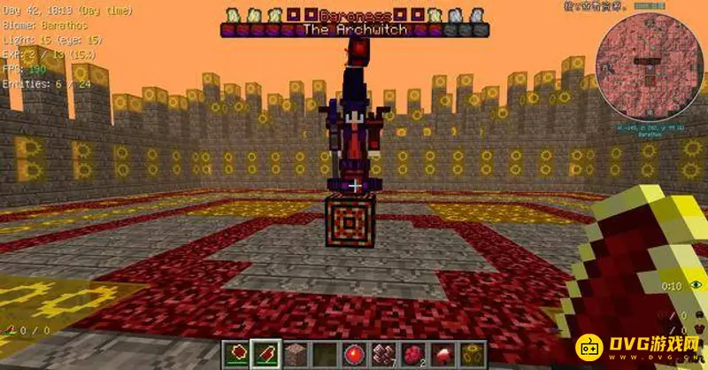 2、女爵、召唤方法,使用召唤物即可召唤。召唤物获取方法:女爵的召唤物术士宝石,需要用到4个符文块,1个蓝宝石和1个爵士锭即可合成,符文块和蓝宝石是主世界的矿物,而爵士锭是爵士世界的矿物都是非常好获取的。