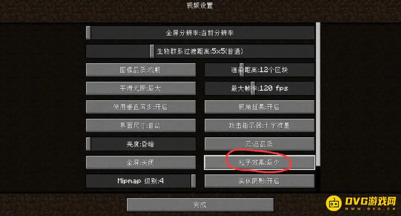2,然后把粒子效果调成最少,就可以隐藏药水粒子效果了。