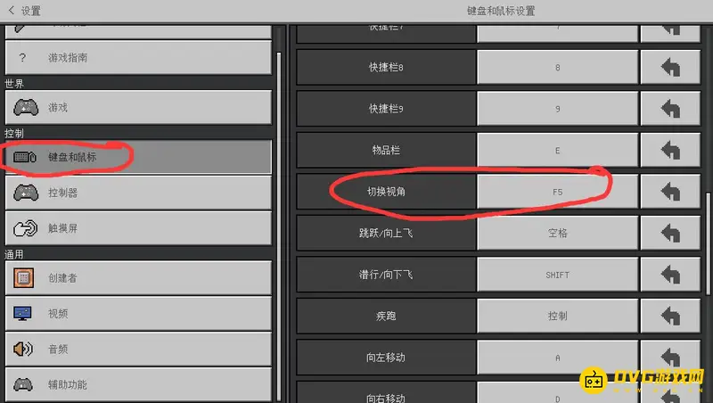 2,接着找到左侧的键盘和鼠标,就可以在右侧发现切换视角的按键了。