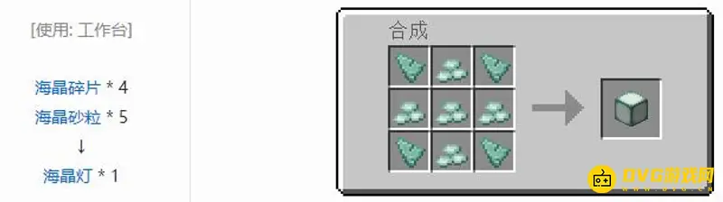2,然后按照下面的配方就可以使用海晶沙粒合成海晶灯了。