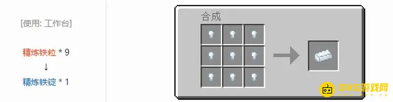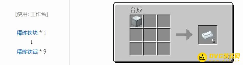 2,第二个方法如下,为精炼铁块分解成九个精炼铁锭。