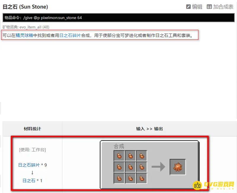 日之石可以在精灵球箱中找到或者用日之石碎片合成,用于使部分宝可梦进化或者制作日之石工具和套装。使用工作台可以将九个日之石碎片合成一个日之石。