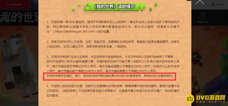 速览:DVG小编为大家解答《我的世界》时间限制相关问题。对于成年玩家来说,游戏并没有专门的时间限制,随时可以进入体验。但未成年用户则受到规定管理,仅能在特定时段登录,这也是目前国内游戏行业的普遍做法。