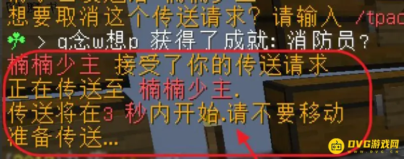 5.好友那边就会收到传送提示,等待点击是后我们原地不动等待三秒。