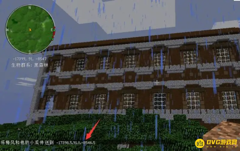2、比如下面我们传送到森林府邸所在的地方,坐标是-17399、91、-8547。然后我们输入/tp -17399 91 -8547,输入完毕后按enter键确定,等待几秒就能传送过去了。