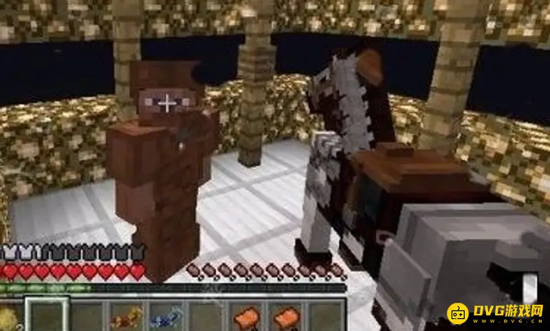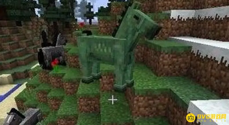 2.这时你只需按下潜行按键下马,然后给马套上鞍.