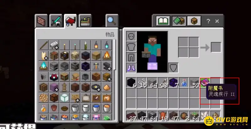 玩家要先获取一本灵魂疾行的附魔书,可以通过与猪灵进行交易获得。