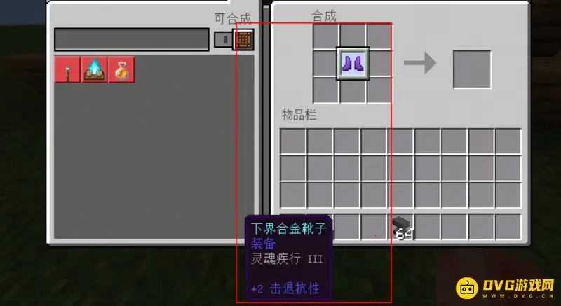 玩家使用铁砧将下界合金靴附魔灵魂疾行的属性。在完成附魔后,就可以穿着该靴子在灵魂土或者灵魂沙上疾行,并且行走速度比正常方块还要快。