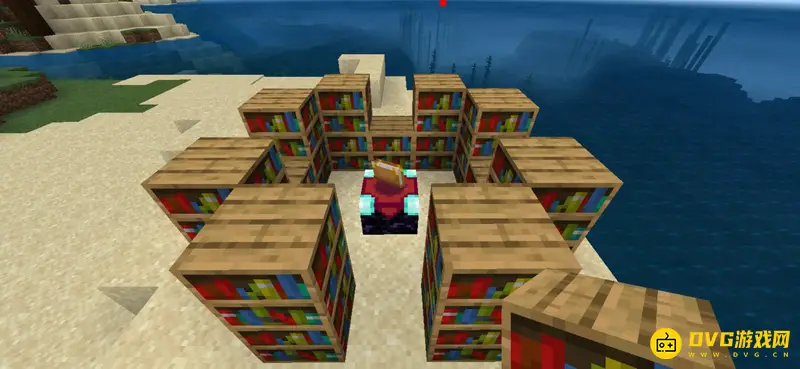 (1)、将附魔台放在中间,书架围绕他转一圈(最好有16个,这样可以得到满级附魔)。