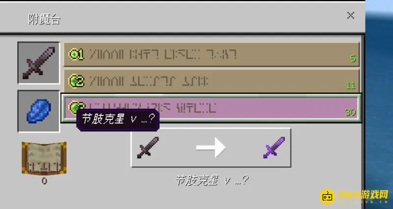 (2)、点开附魔台,将青金石放在下面,装备放在下上面,选择附魔属性。
