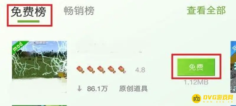 5.但是呢,很多优秀的模组都是收费的,那么我们不想花钱该怎么办呢?我们可以查看【免费榜】,这下面也有不少免费并且优秀的模组哦!我们选择自己喜欢,感兴趣的模组,点击绿色按钮进行下载。