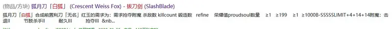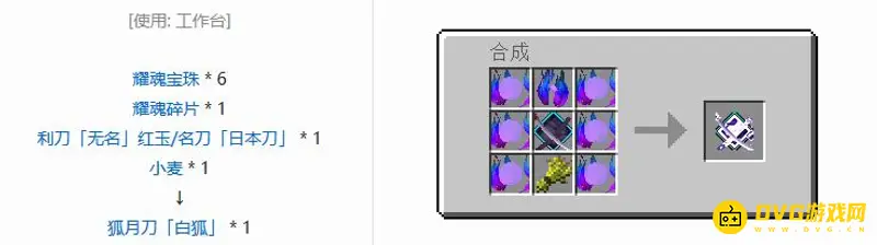 六个耀魂宝珠,一个耀魂碎片,一把利刀「无名」红玉/名刀「日本刀」和一个小麦就可以合成拔刀剑白狐了。