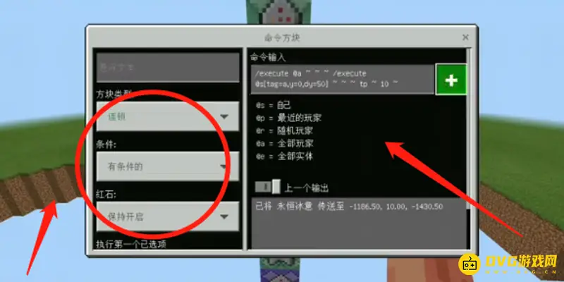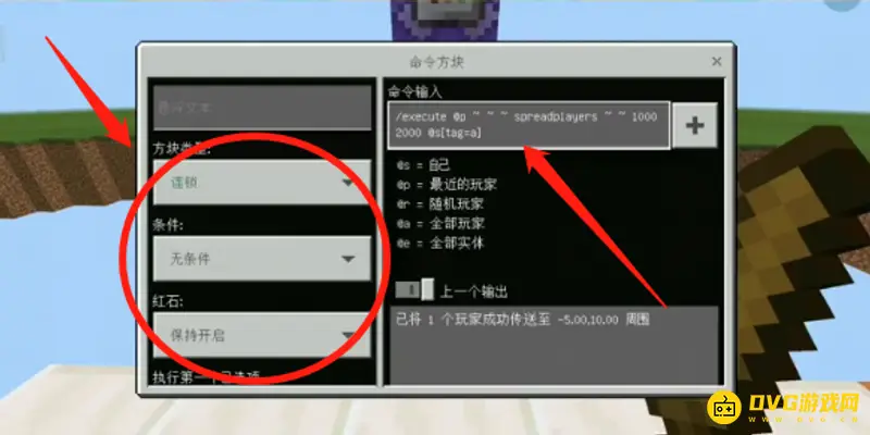 7./execute @a ~~~ /execute @s[tag=a,y=0,dy=50]~ ~ ~ tp ~ 10 ~,(连锁 有条件 保持开启)tp到指定坐标;