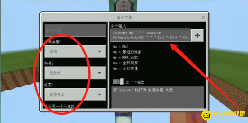 8./execute @a ~~~ /execute @s[tag=a,y=0,dy=50]~ ~ ~ tag @s add b,(连锁 无条件 保持开启)创建空岛的玩家添加标签b;