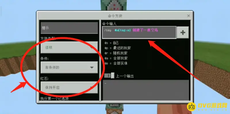 4./say §!§b @a[tag=a] § d创建了一座空岛;(连锁 有条件 保持开启)