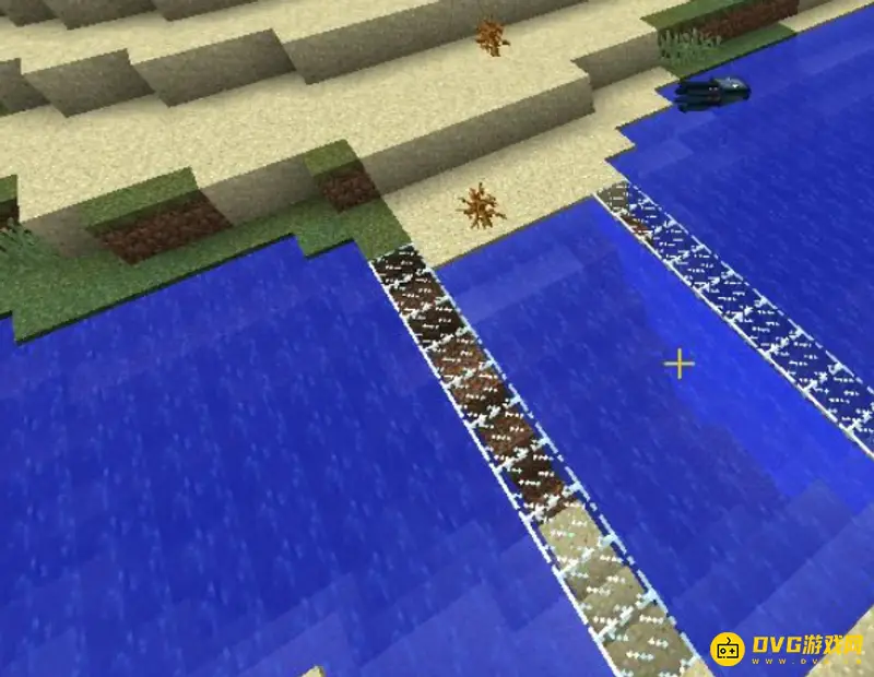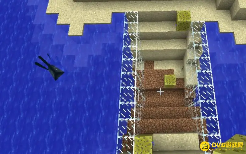 1、先找一个我们需要的水域,然后用玻璃块或者其他的方块圈起来。