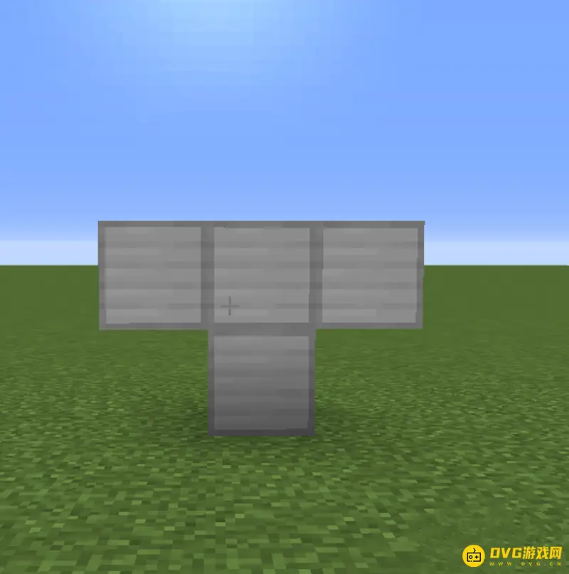 1、首先下方放置一个铁块。然后向上放一个铁块。两边分别再放一个铁块。
