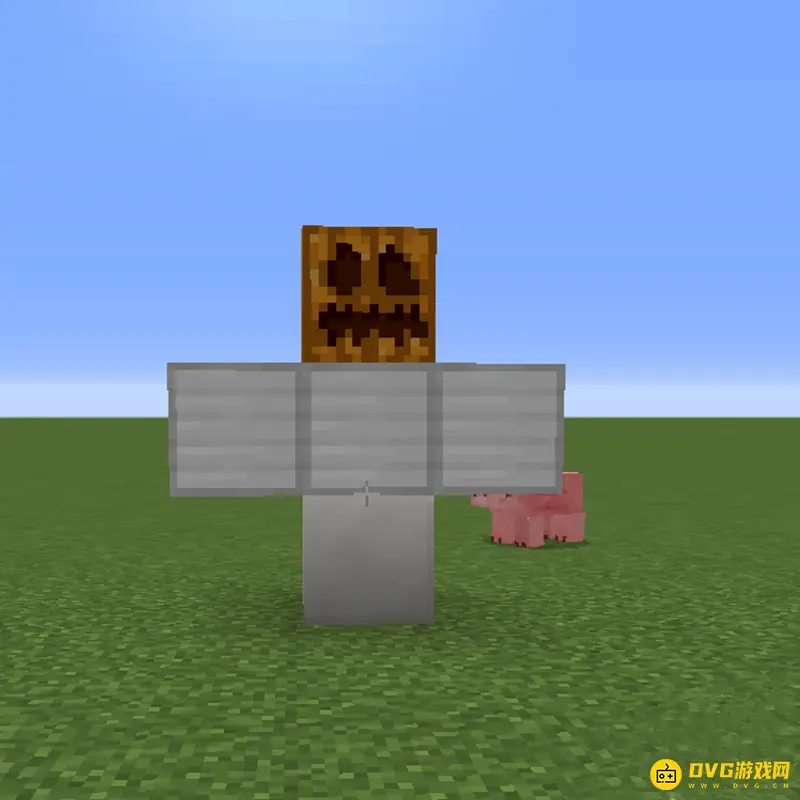 2、在三个铁块中间的那个铁块上面放置一个南瓜就会生成铁傀儡了。生存模式下铁不太容易获得,所以不推荐人为制造。