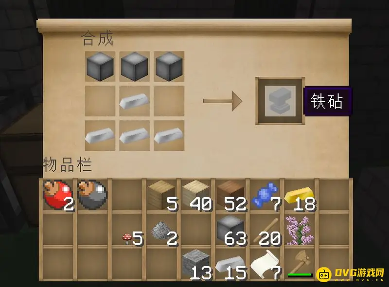 6、最后用三个铁块和四个精铁锭摆成一个“工”字型就能制作出铁砧了。