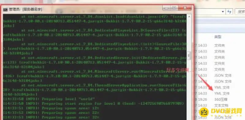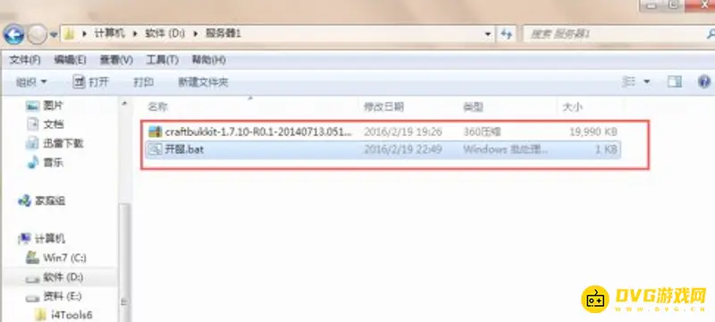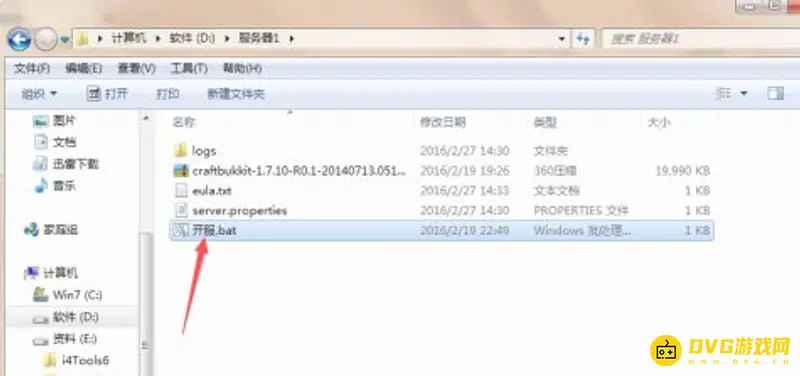 5.好了,相信你已经填写完以上代码了,接着,保存到服务器中的文件夹(建议在d盘中创建一个叫”服务器“的文件夹)然后重命名为”开服.bat“(不含引号)并将开服包放在一起。