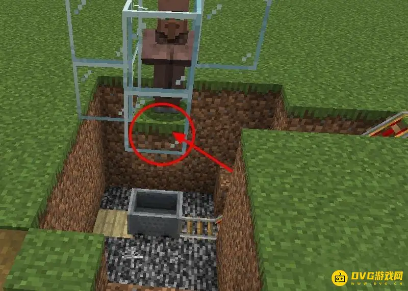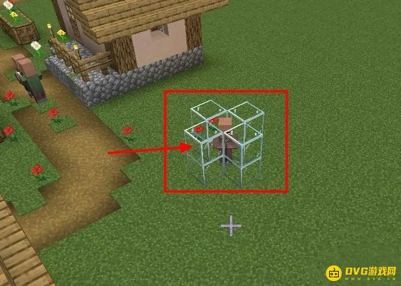 12、将村民附近的方块全部打掉,只剩下村民站着的那一格。