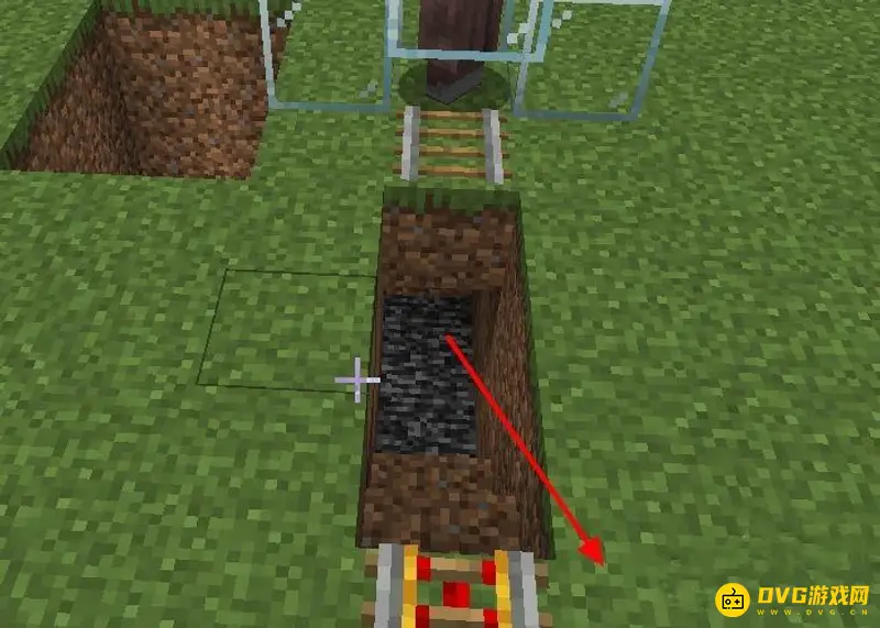 13、然后我们玩家站在矿车后面的位置,打掉方块。