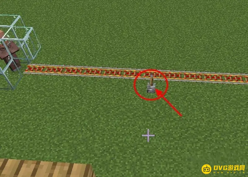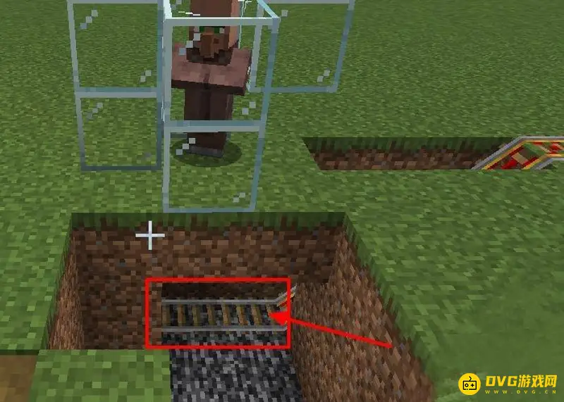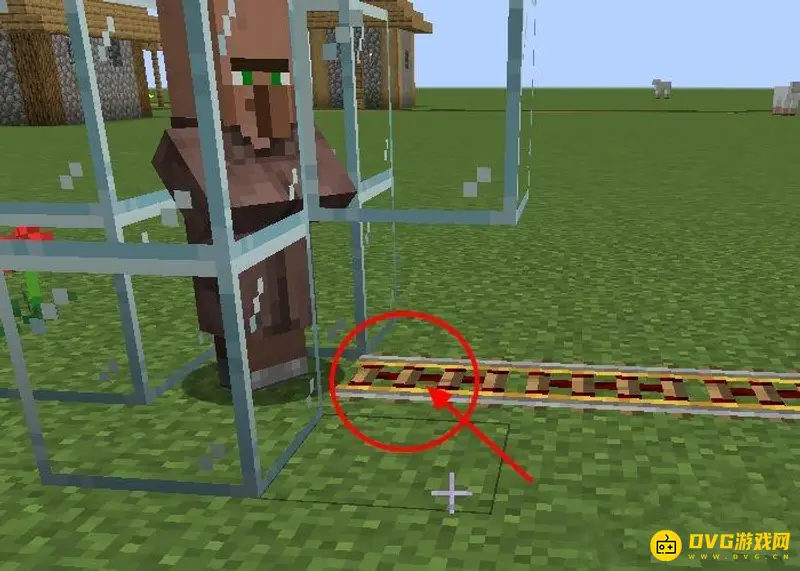 3、打掉村民脚底附近的玻璃,更换为激活铁轨。