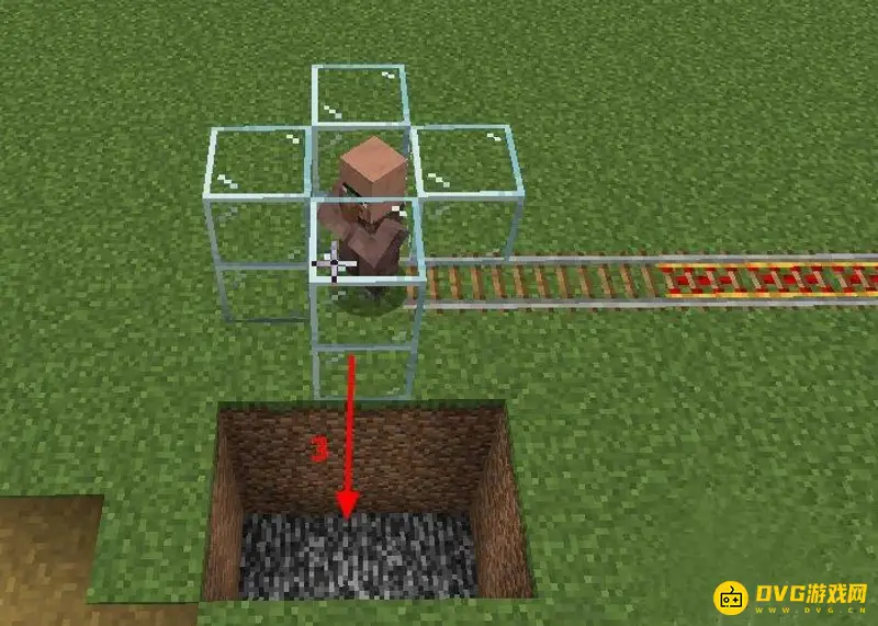 14、这样村民就会掉下来掉到矿车上,矿车就会带着村民沿着我们铺好的铁路把村民带回家中。