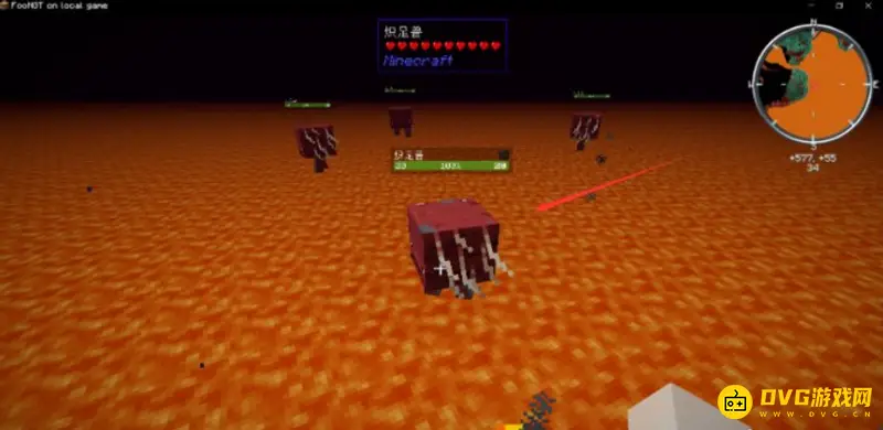 6.最后,我们拿着诡异菌钓竿在附有鞍的炽足兽身上单击右键即可将炽足兽驯服,骑着炽足兽我们可以在地狱的岩浆海中行走。