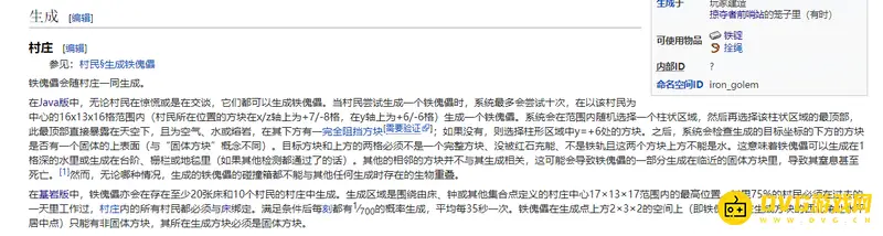 在Java版中,无论村民在惊慌或是在交谈,它们都可以生成铁傀儡。当村民尝试生成一个铁傀儡时,系统最多会尝试十次,在以该村民为中心的16x13x16格范围内(村民所在位置的方块在x/z轴上为 7/-8格,在y轴上为 6/-6格)生成一个铁傀儡。在基岩版中,铁傀儡亦会在存在至少20张床和10个村民的村庄中生成。生成区域是围绕由床、钟或其他集合点定义的村庄中心17×13×17范围内的最高位置铁傀儡会自然生成在掠夺者前哨站的黑色橡木笼子里。当被释放后,铁傀儡会帮助玩家攻击怪物。