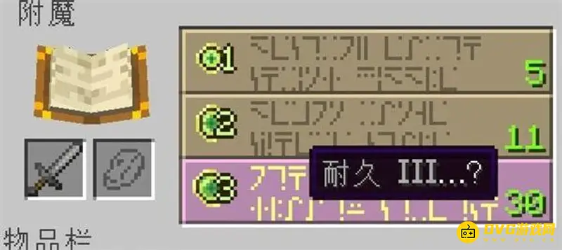 9.打开附魔台放入石剑,用石剑把这条属性用掉