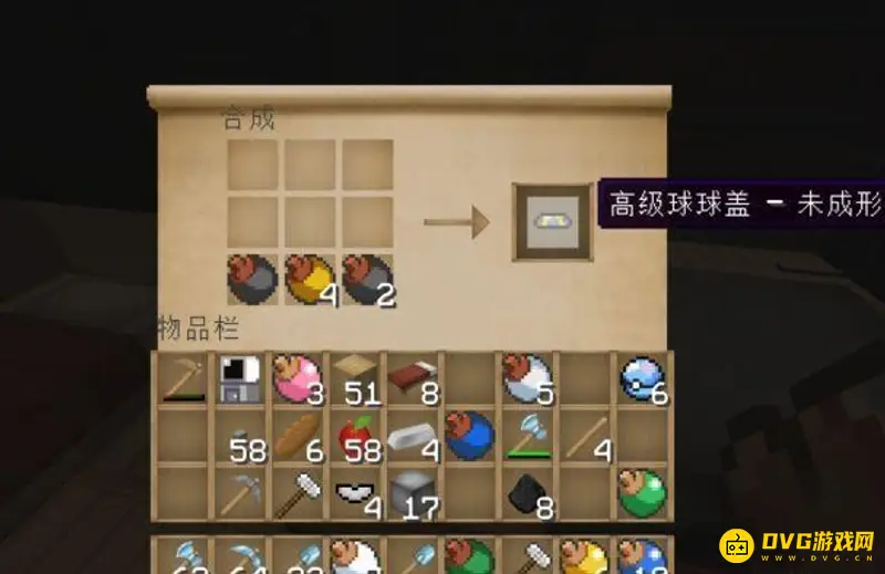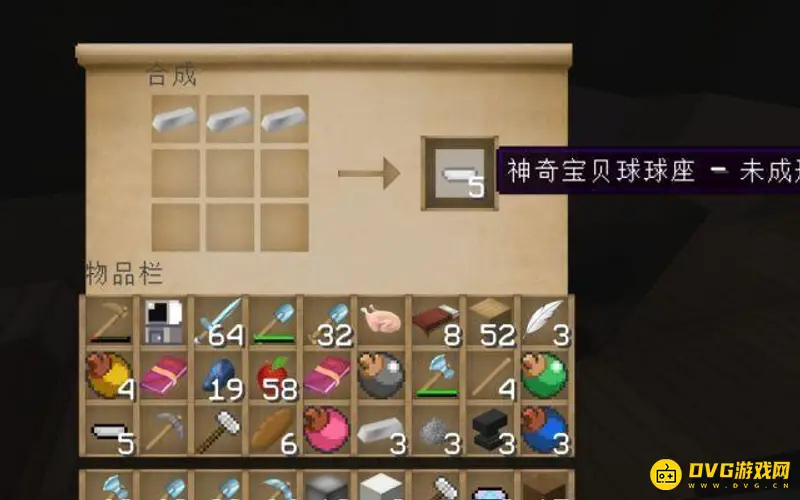 5.再来可以用三个铁锭合成出来未成形的精灵球底。