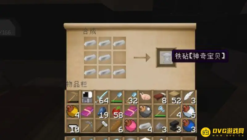 6.这个时候我们还要准备一个铁砧,用八个精铁锭合成。