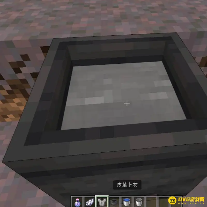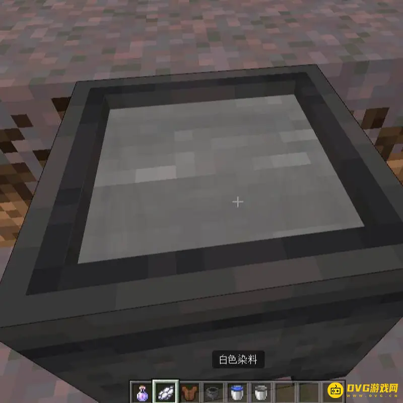 1,首先我们需要找到炼药锅,然后把里面给装满水,拿着染料右键点击炼药锅,给里面的水染色。