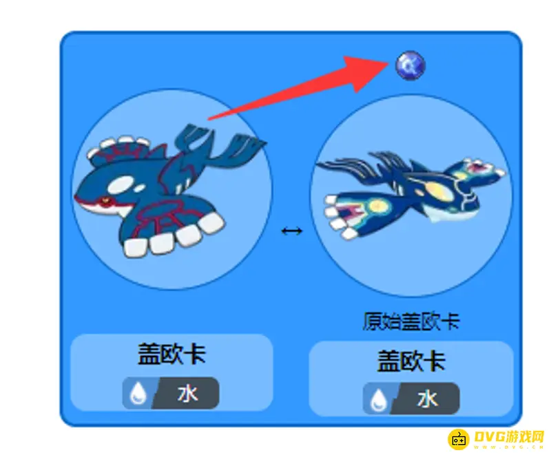 2、盖欧卡需要使用【靛蓝色宝珠】才能进行原始进化成,如下图所示,进化后外观会有所变化,能力也会提升。
