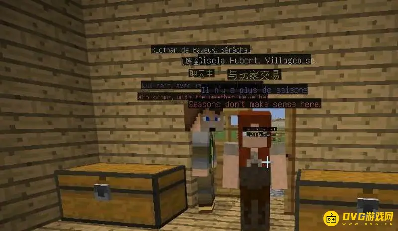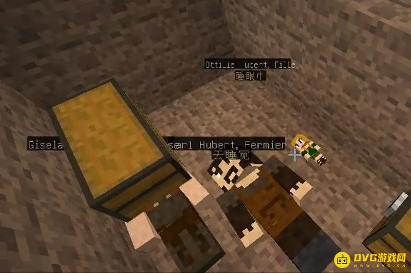 7、走进自己村庄的大厅,里面有很多箱子,随便向一个箱子里放建筑材料或食物,(和npc的村庄一样,只是可以随便拿)然后让村民去建房,放食物增长人口,村庄很快就会强盛起来哟!(图为正在建筑的房子)