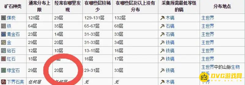 绿宝石只会在山脉生物群系和山崖生物群系中生成,在1-33层随机出现,不确定会出现在哪一层,但是在20层出现的几率要大一些。