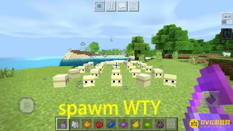 4、第四个指令 spawm WTY,这个指令的用途可就十分强大了,你可以使用这个指令来创造一个新的生命,你可以创造出村民,也可以创造出花花草草,植物什么的,并且他们都是全新的生命。