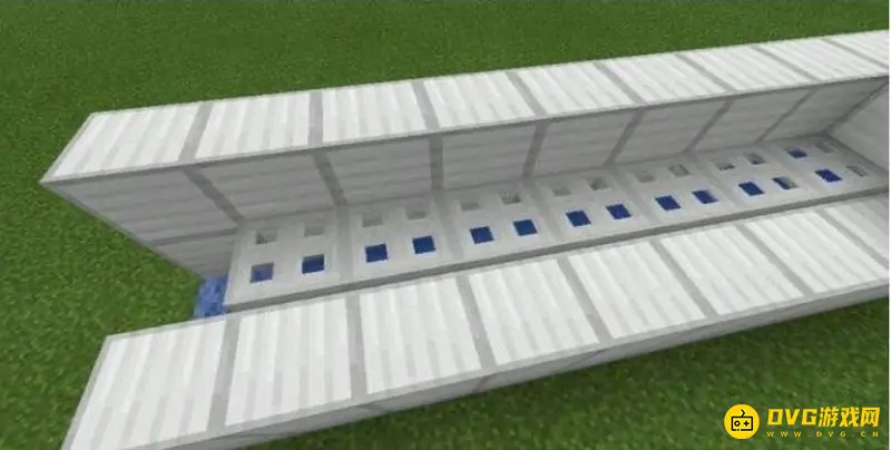 3、接着在行方块上盖一层护栏,可以是铁护栏,也可以是其他护栏。