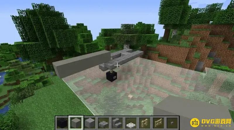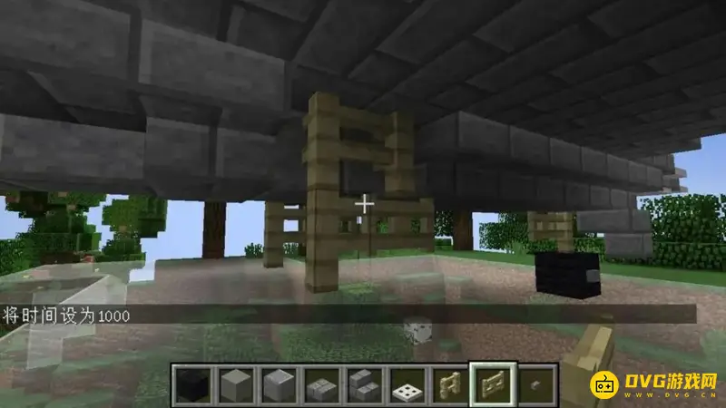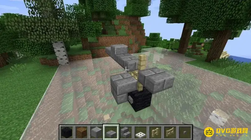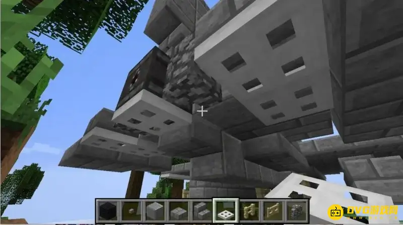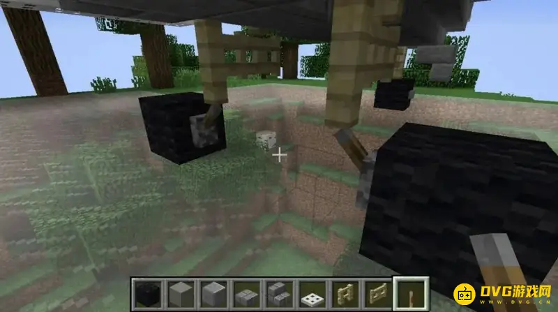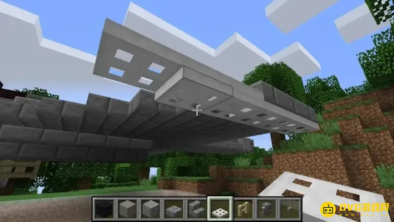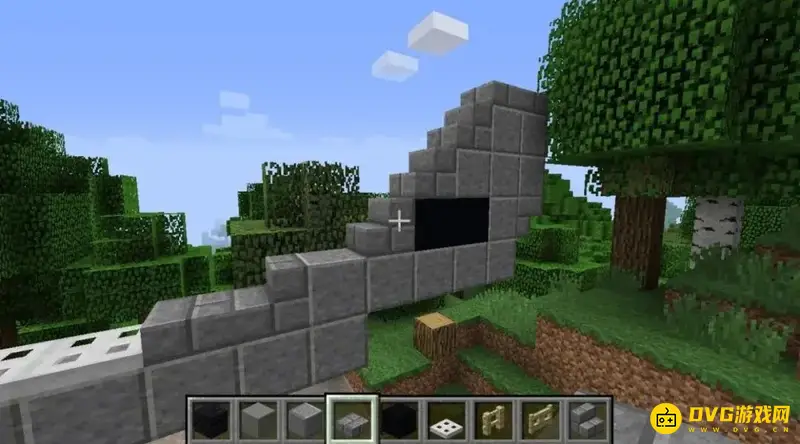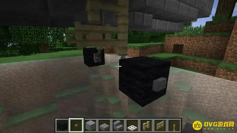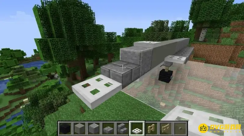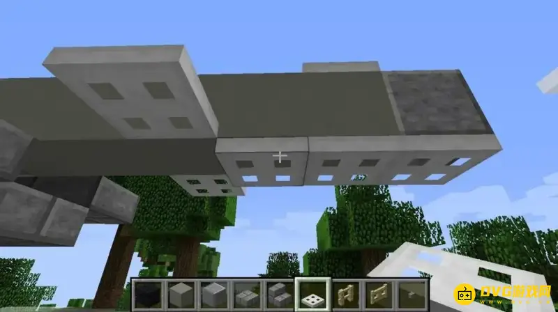 21、最后在侦测器的下部,圆石墙两侧两格放上五块铁活板门,战斗机就建造完成啦!